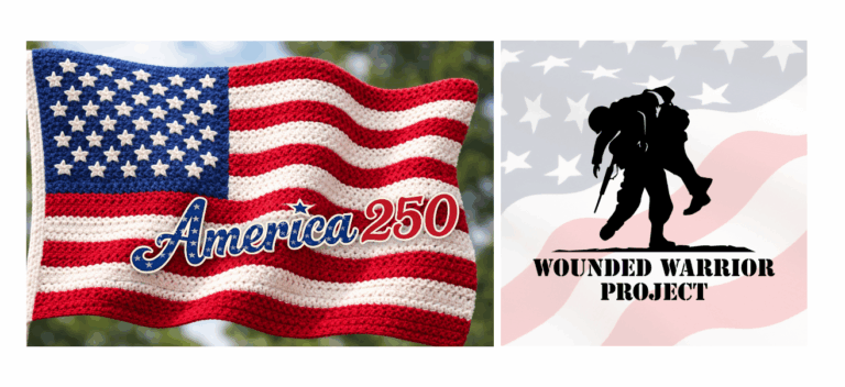 On The Hook Crochet will donate $1 to the Wounded Warrior Project for every America 250 pattern and gift item purchased. Wounded Warrior Project supports veterans and their families who have been injured in the line of duty.
