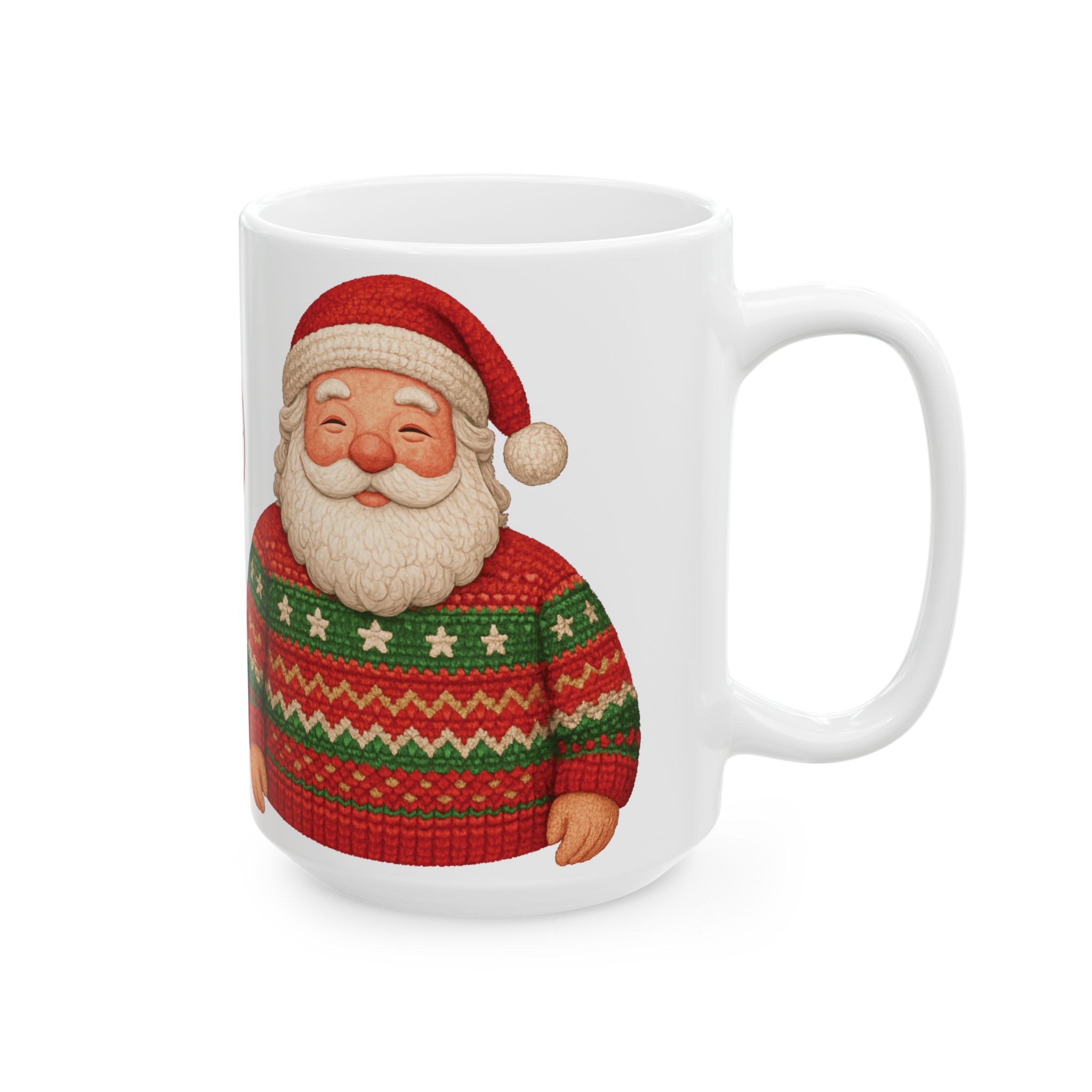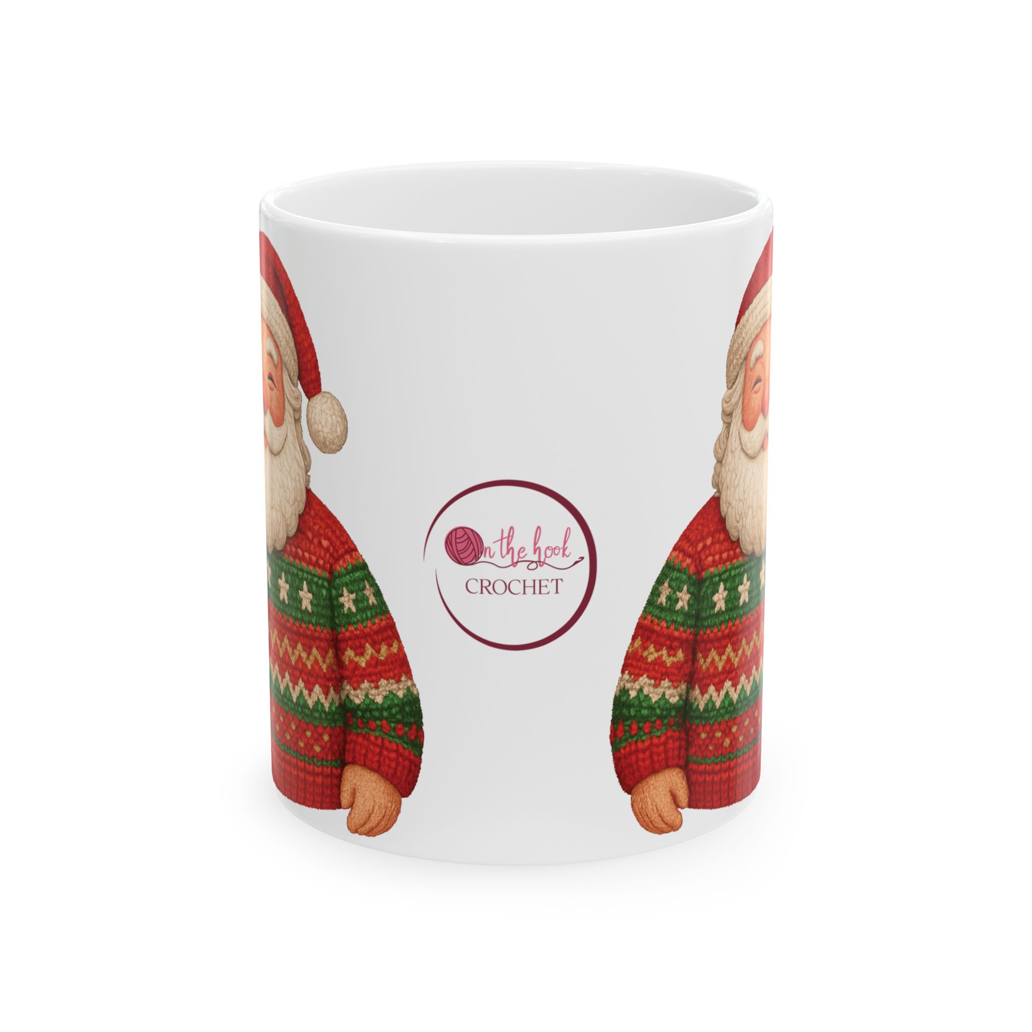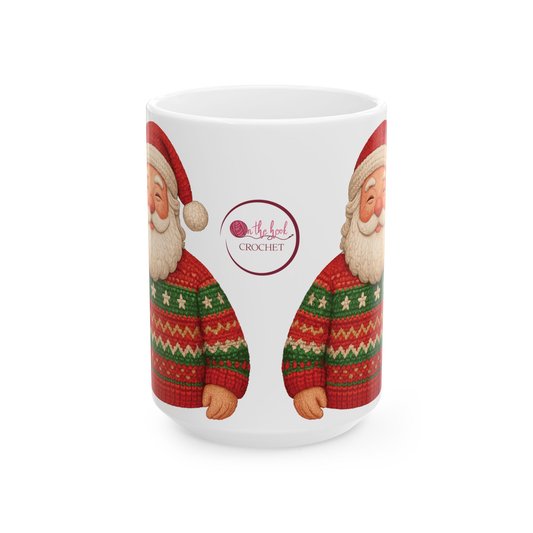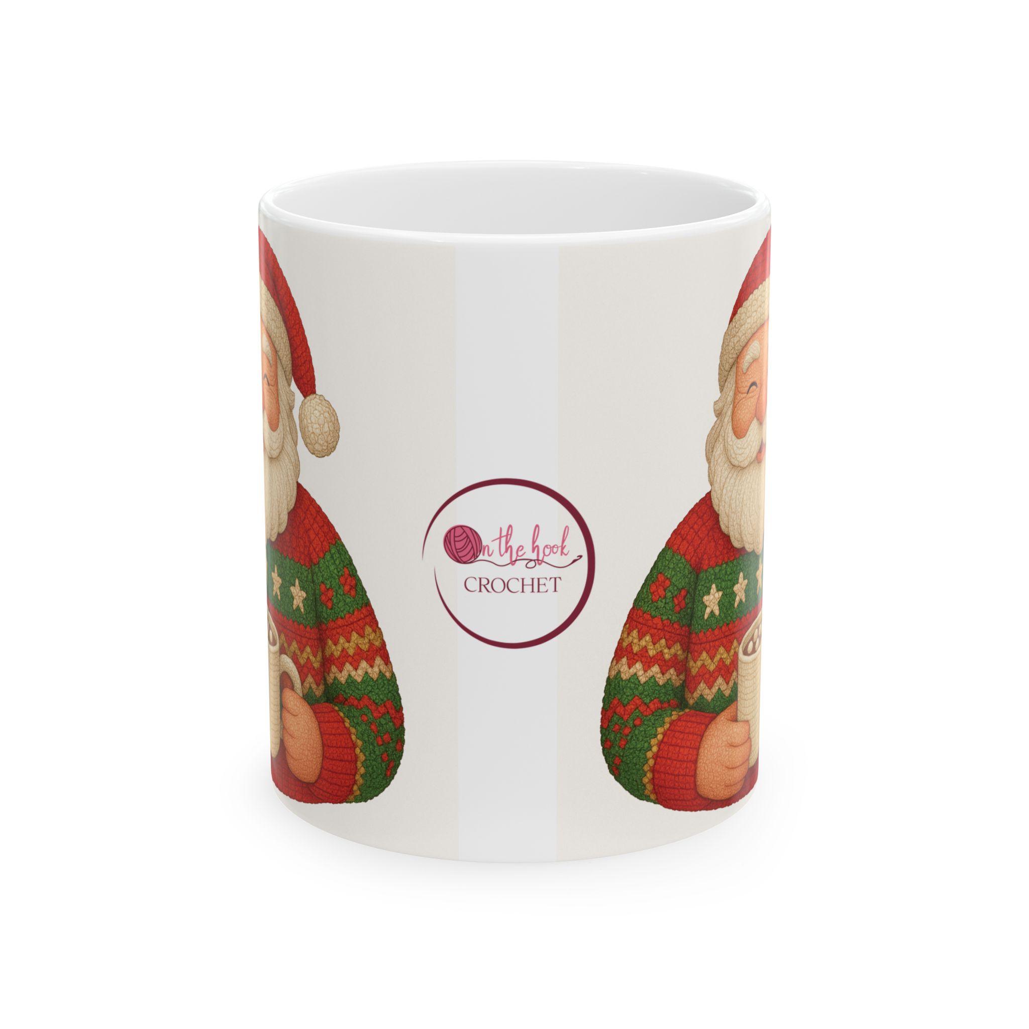 Santa Mug – Ceramic (11oz) — Festive Christmas Crochet Sweater and Cap