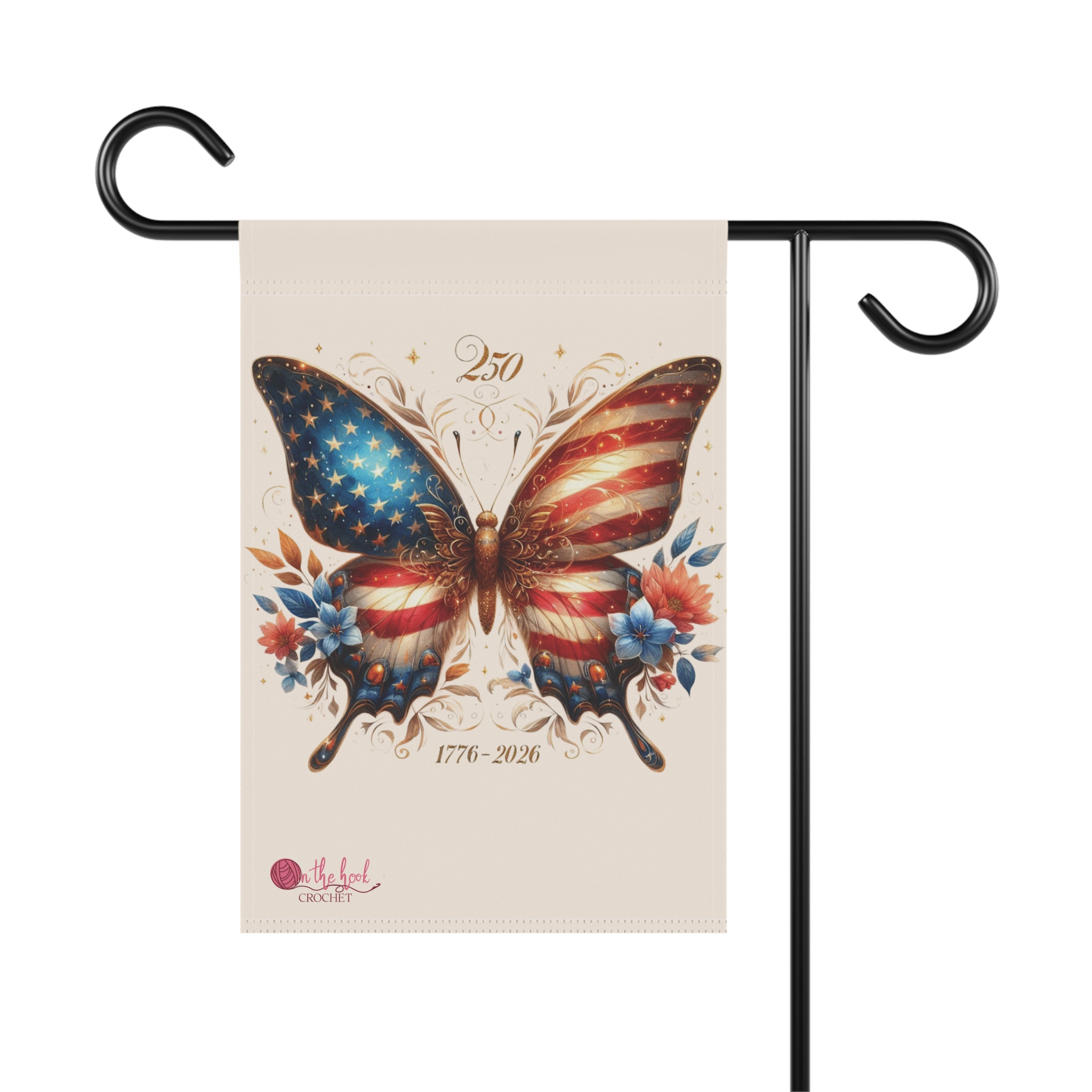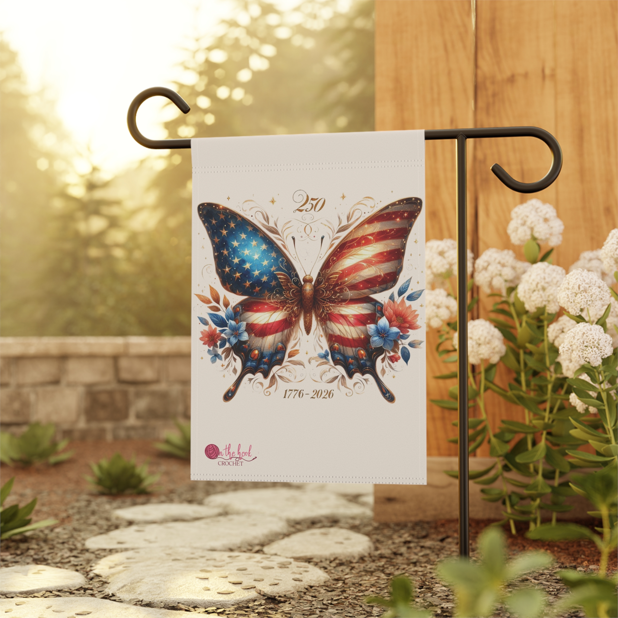 An America 250 Anniversary themed garden banner featuring original art fron an Etsy artist. Perfect for adding a patriotoc touch to your outdoor space. Ideal for those who enjoy decorating their gardens and outdoor spaces.