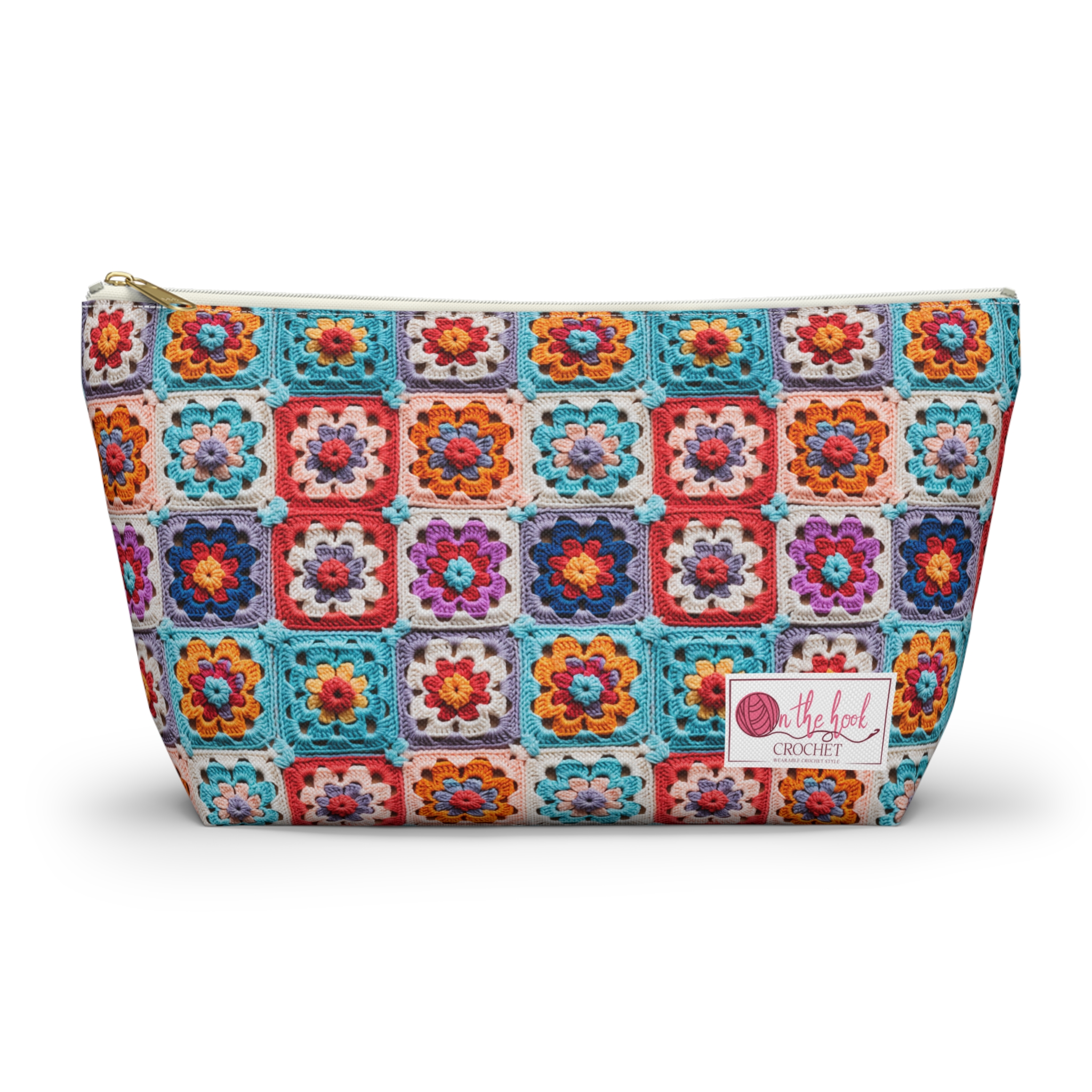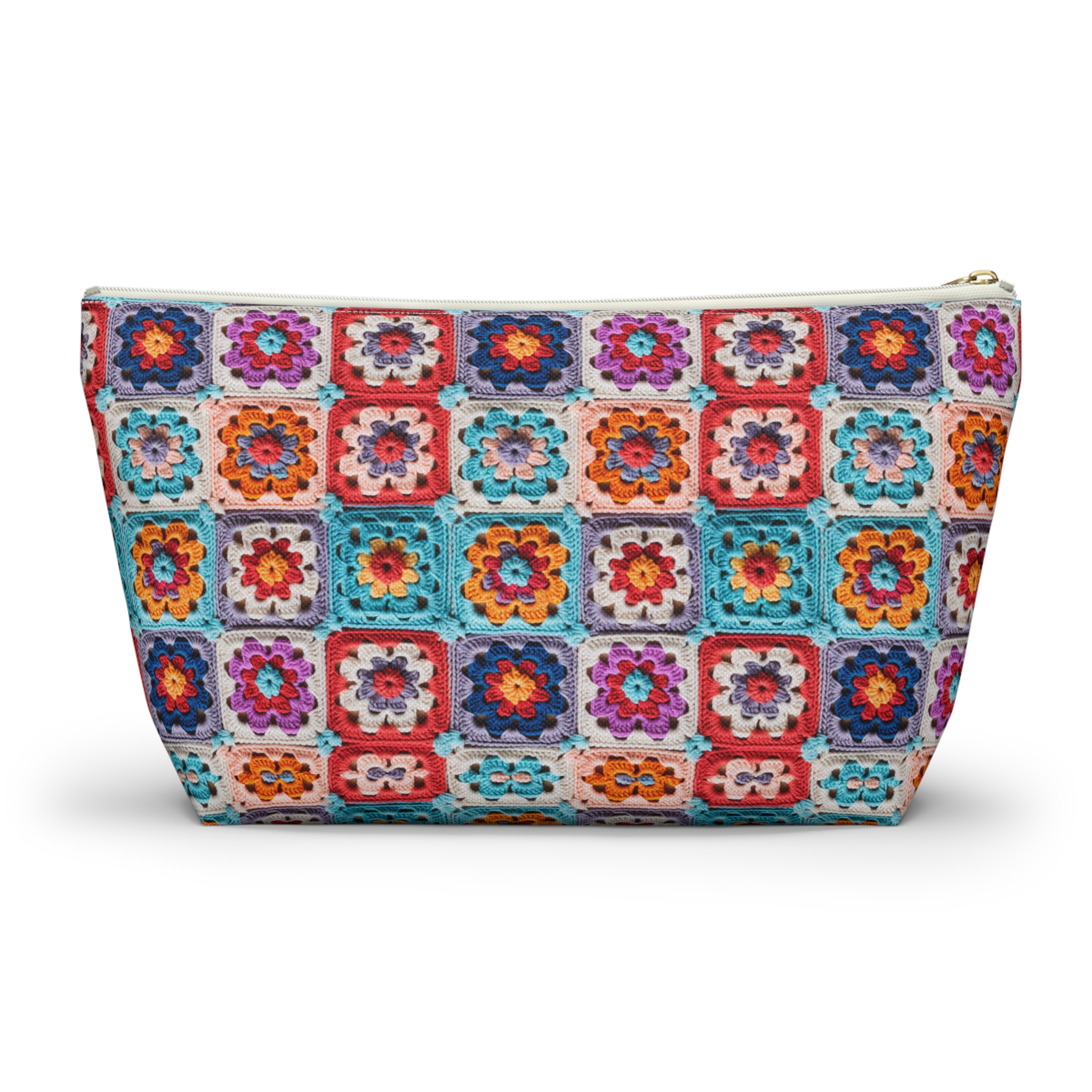 • Granny Squares Zipper Project Pouch – 12″ x 7″ x 3″
