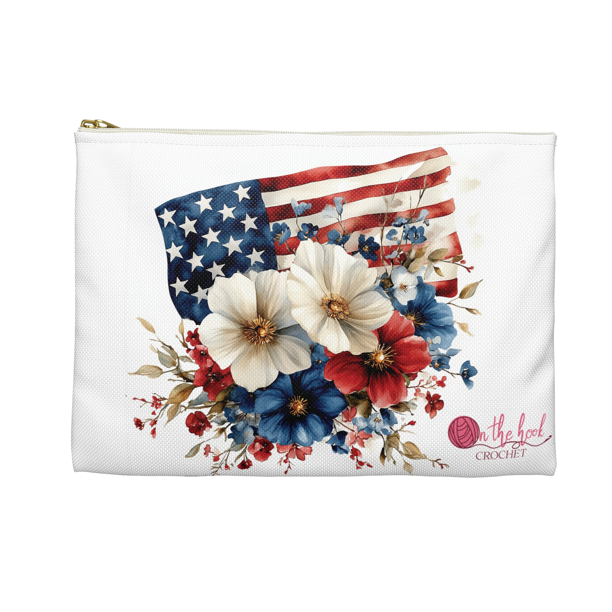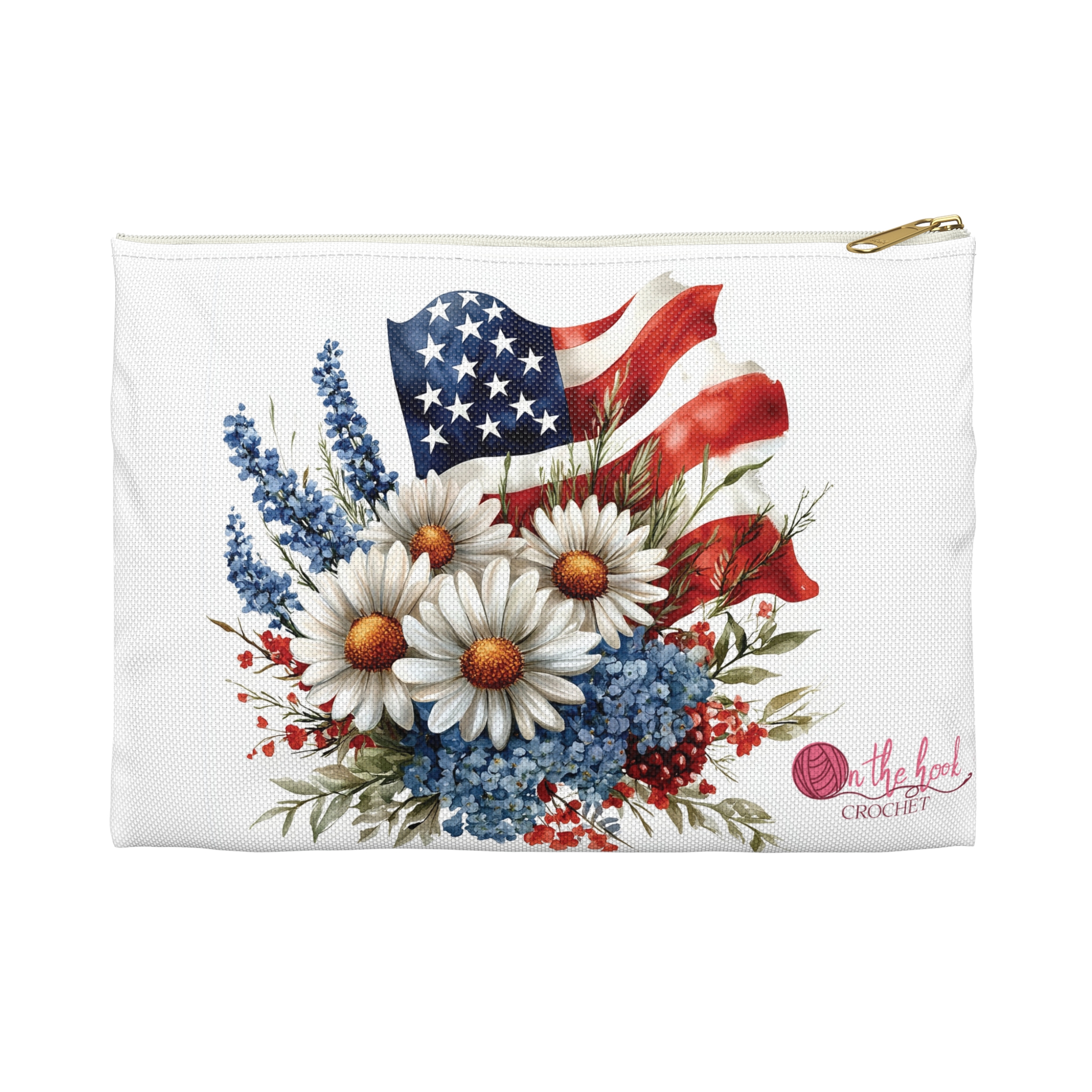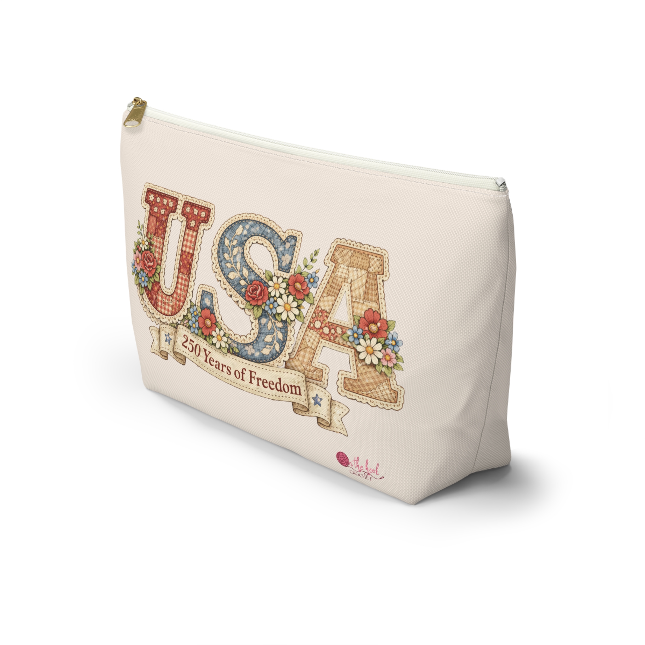 The America 250 Project Pouch is perfect for starting a new crochet project. I love getting started with a pouch this size to hold my first skein, my hook and my instructions. As my project grows, I move to a larger bag, and then this pouch is ready for another project! Long lasting polyester canvas material, smooth lining and a YKK zipper closure.