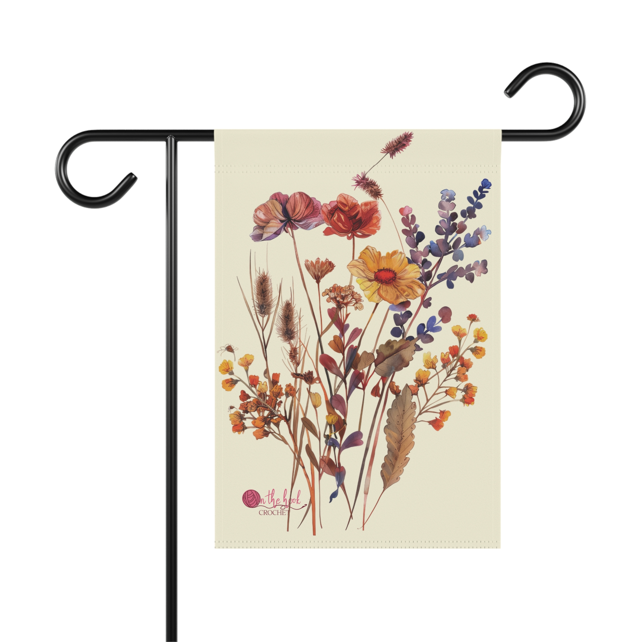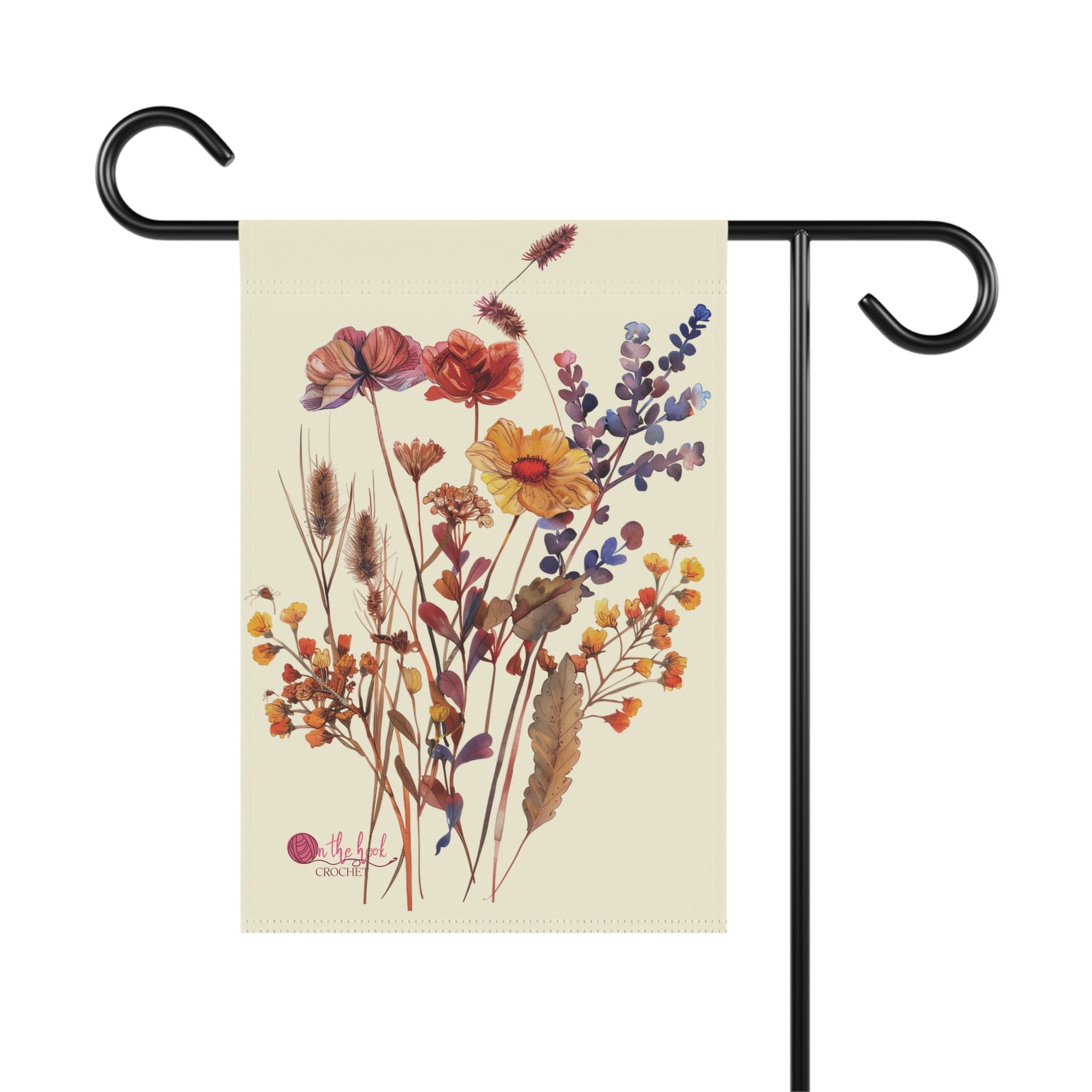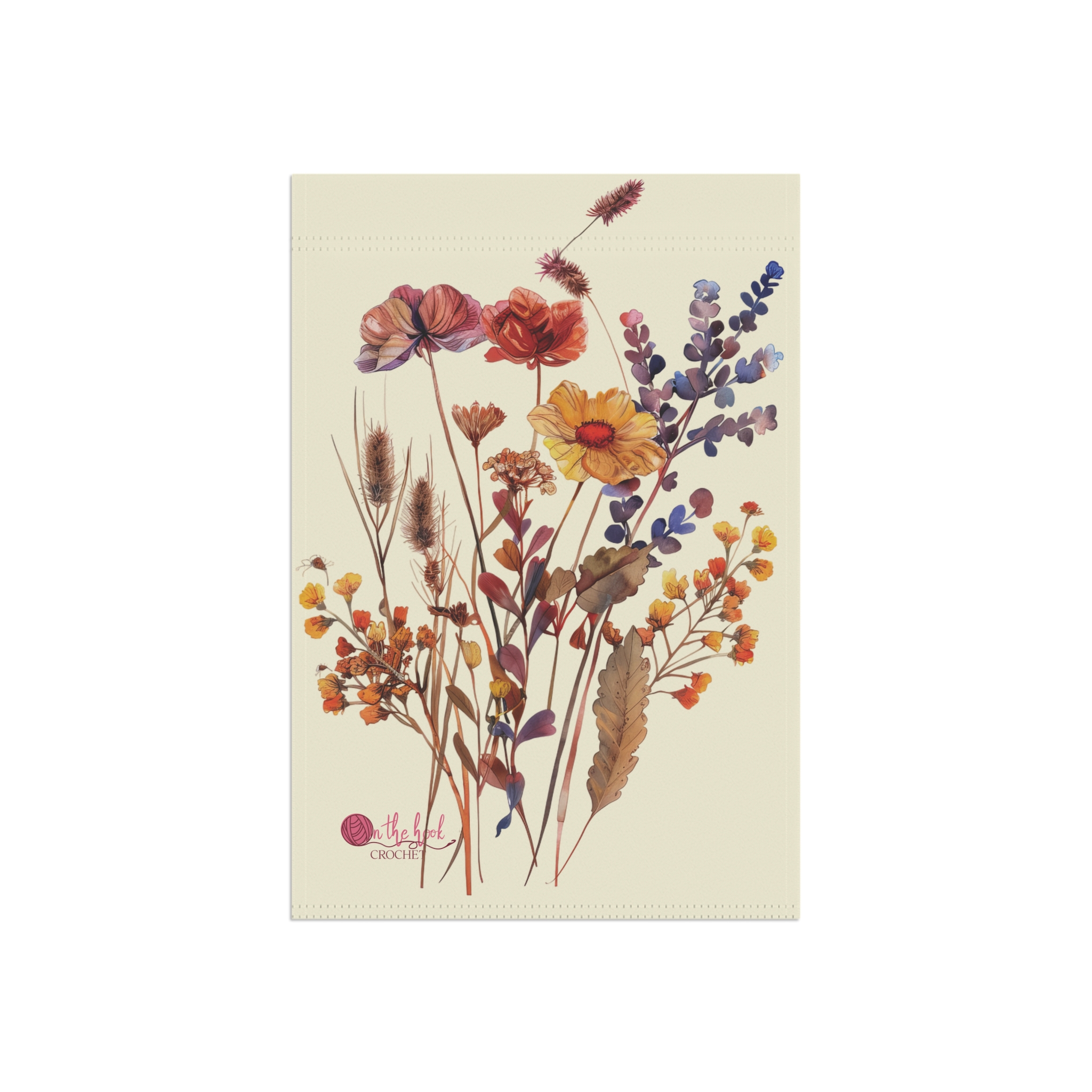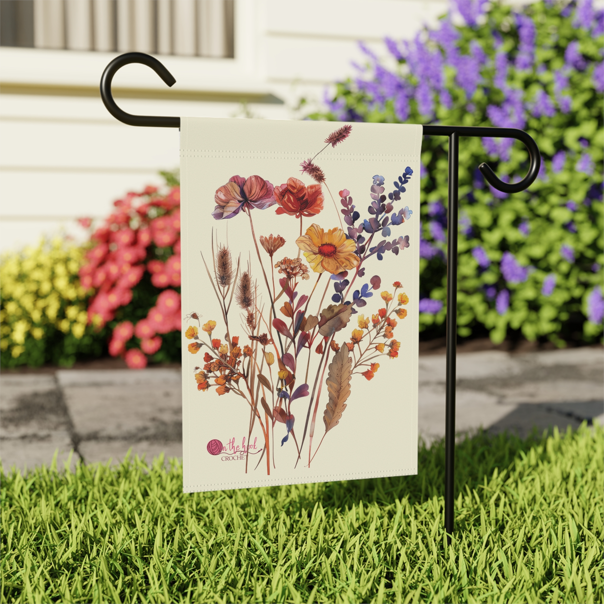 A wildflower themed garden banner featuring original watercolor art flowers, perfect for adding a delicate touch to your outdoor space. Ideal for those who enjoy decorating their gardens and outdoor spaces.