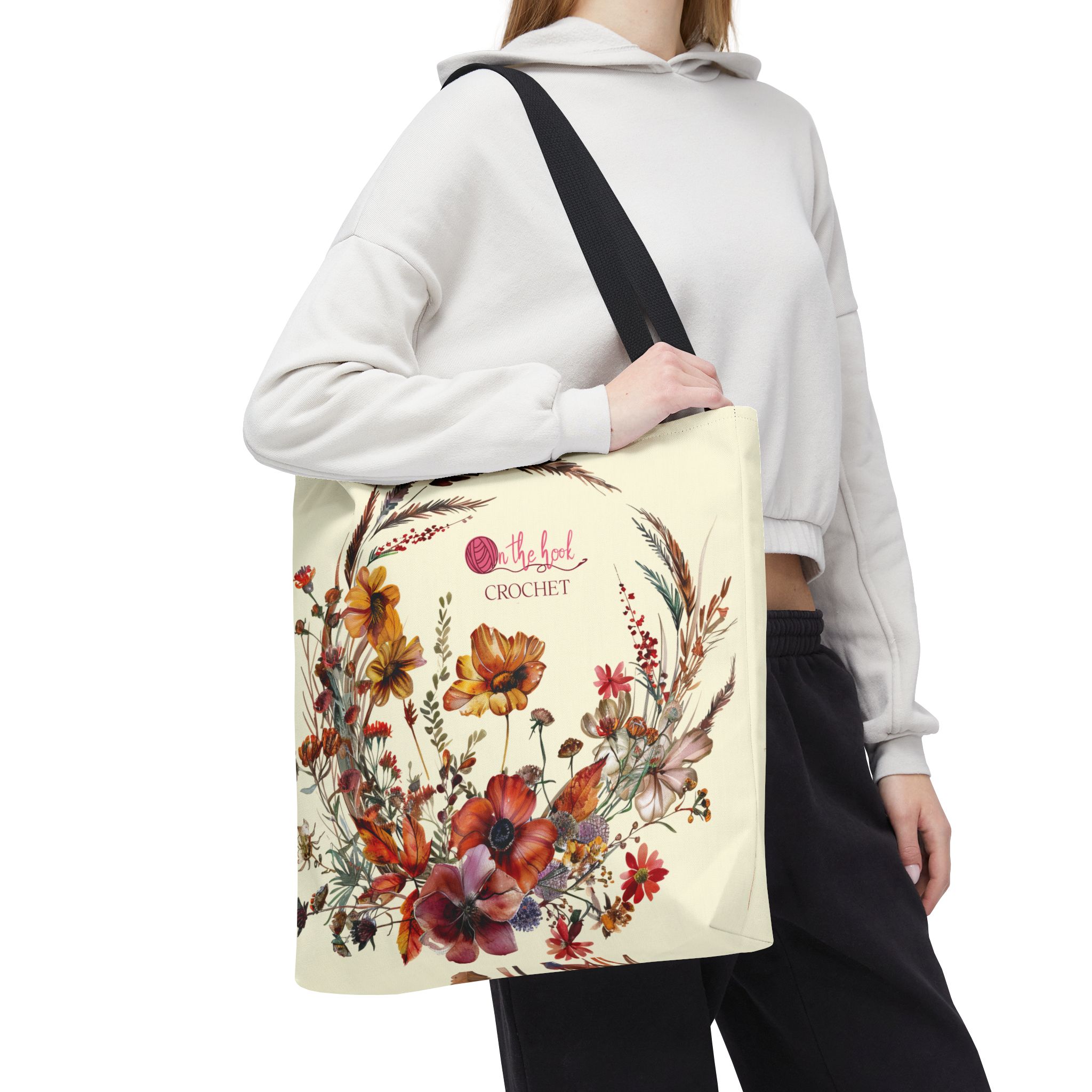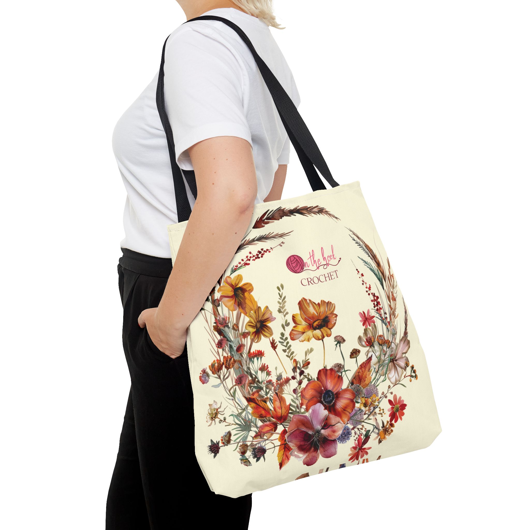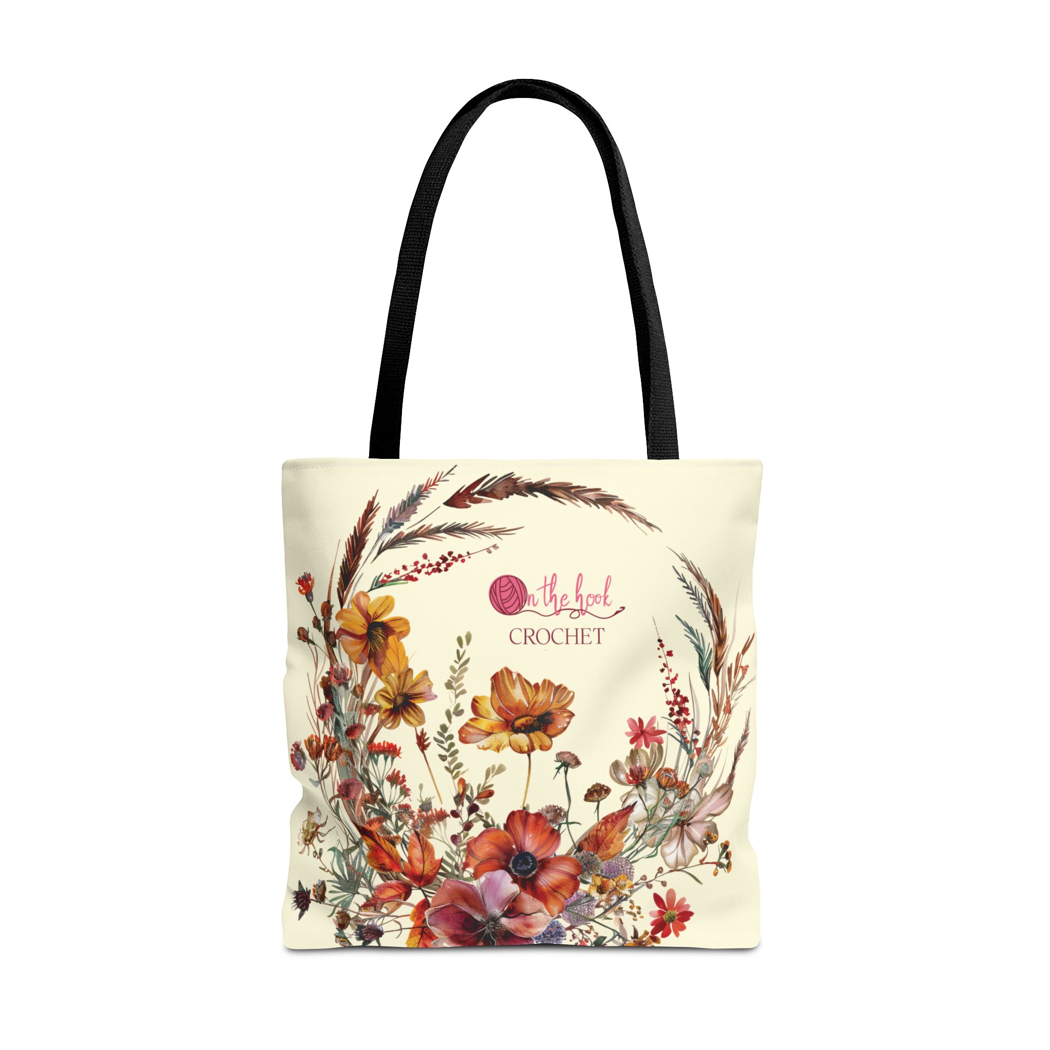 Introducing the unique and colorful AUTUMN FLOWERS project tote bag from On The Hook. This Autumn Flowers tote is designed with original art and is lovely to look at. It reminds me of all my crochet projects.