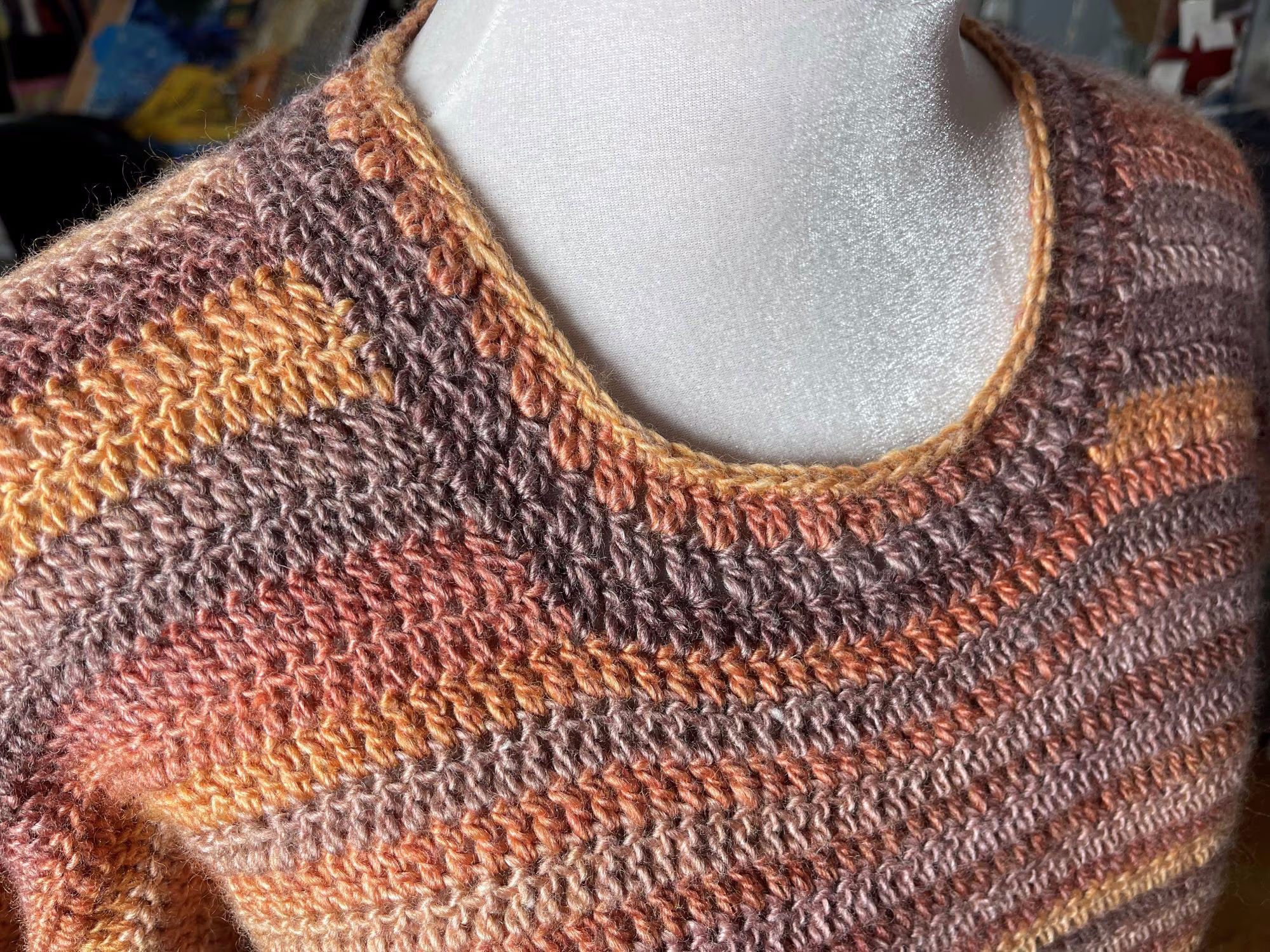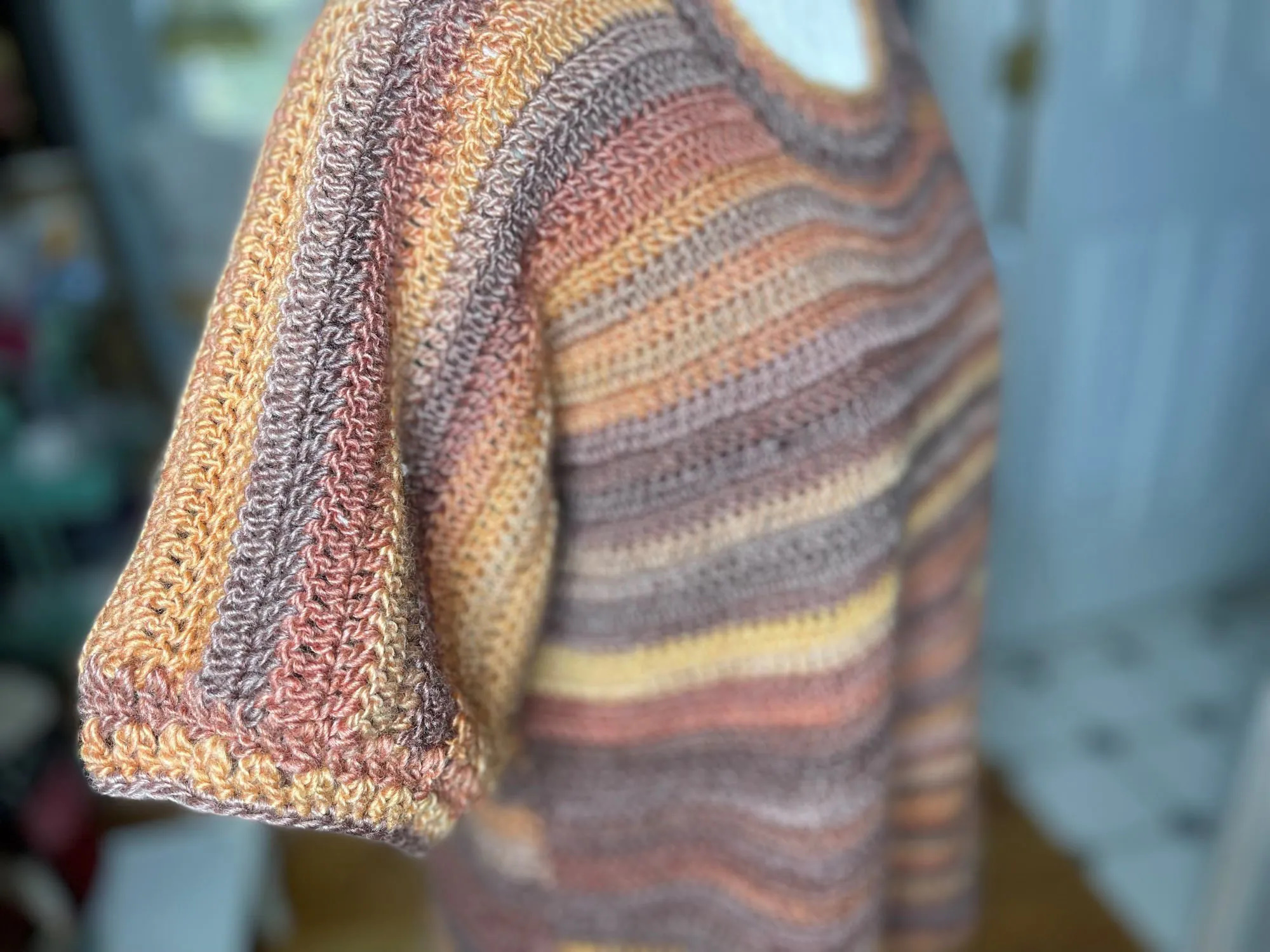 Sleeves are crocheted right into the back and front fabrics. This gives a smooth look