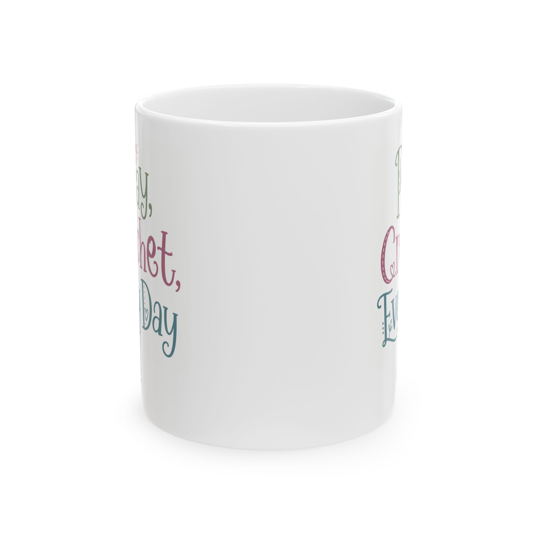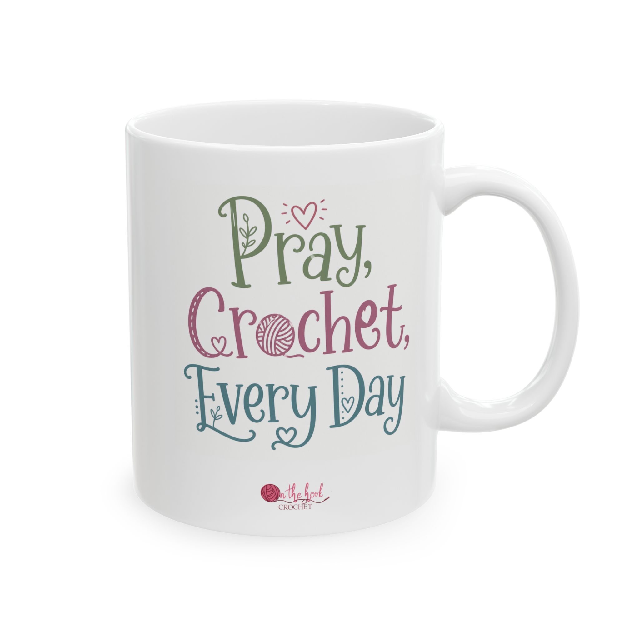 Start your day off right with this inspirational mug from On the Hook Crochet. The phrase Pray, Crochet, Every Day reminds us of a great way to start each day! The 11 oz standard mug is the perfect gift for coffee, tea, and chocolate lovers who love to crochet!