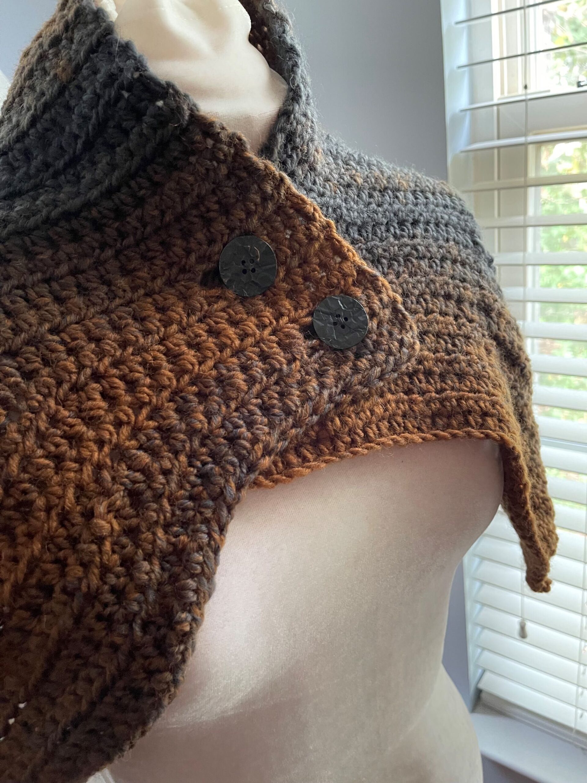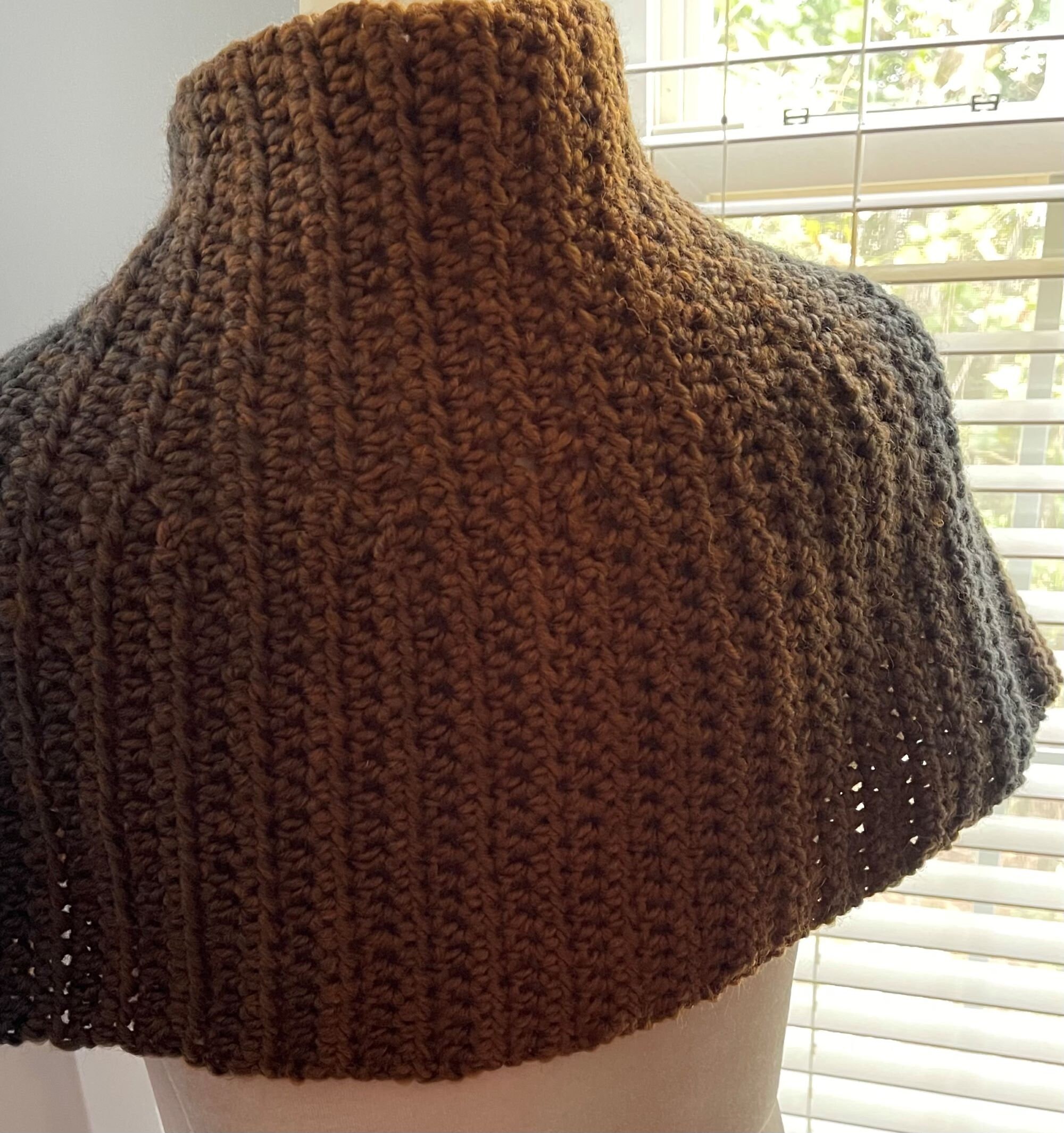If you can crochet and follow directions, you can crochet this beautiful style cape for yourself or a crochet-worthy daughter, niece, sister, grandmother or mom…I designed this cape to be worn over a turtle-neck sweater or just a light blouse with jeans or a pretty skirt and boots for a dressier look.