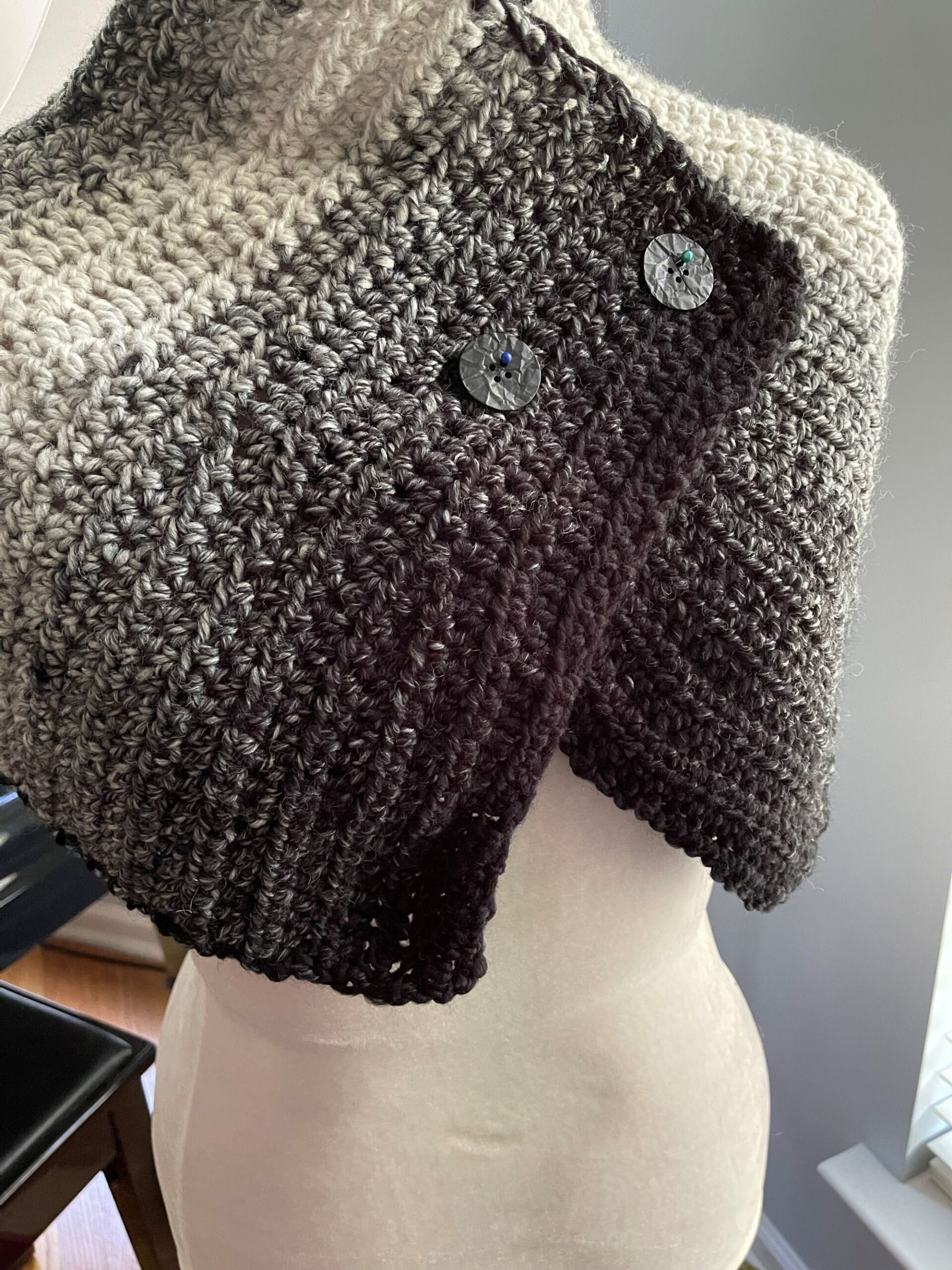 Beware that when you wear an Outlander Cape, you might get requests to ‘make one for me’! It is an easy pattern, especially if you make one or two, the subsequent ones will fly off your hook. Think Christmas gifts!