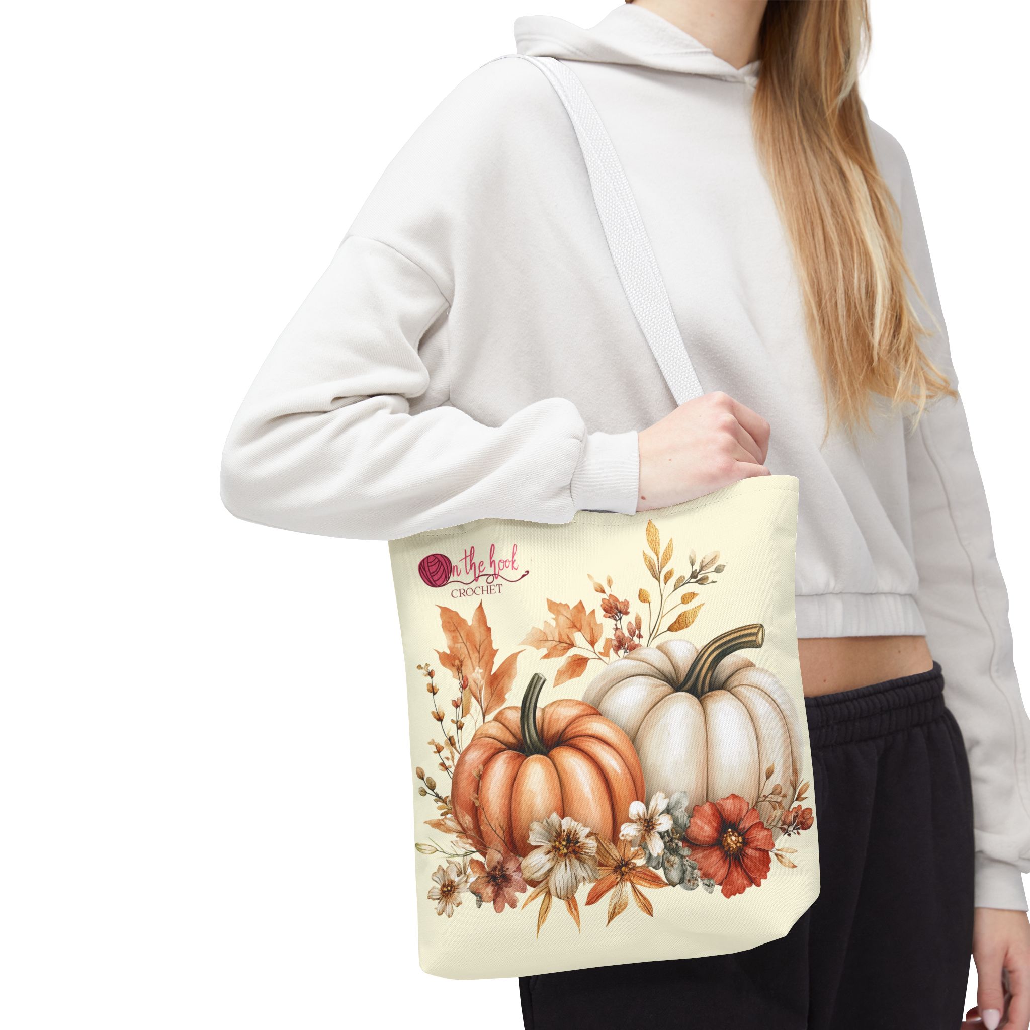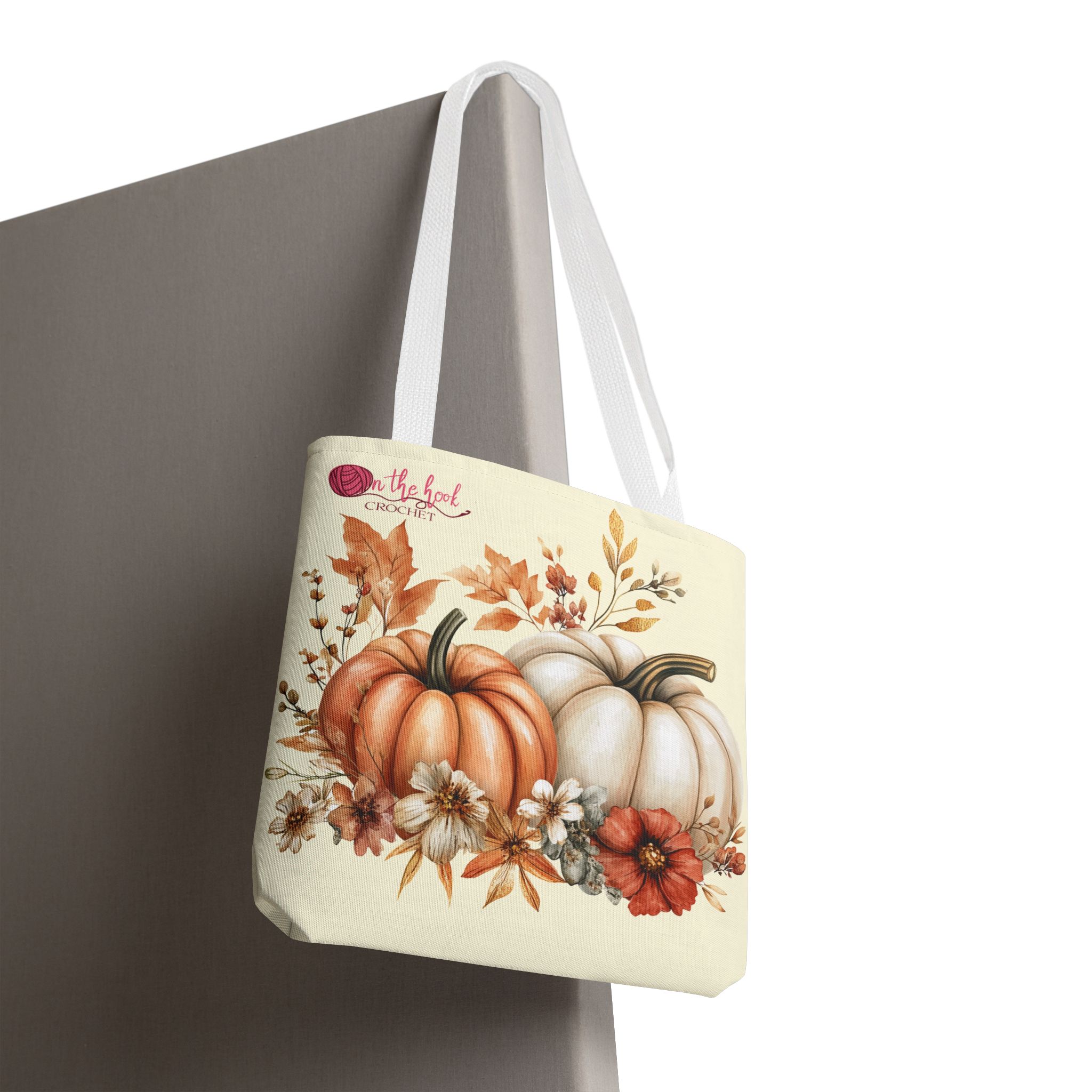 Colorful Pumpkin Spice Project Tote – 13″x13″Â An ideal project tote for smaller projects or use as a carry all for your essentials. Perfect for those who love handmade crafts and need a sturdy bag for everyday use. Ideal for crafters, knitters, and those who appreciate unique designs. Great for gifting or as a new project bag for your everyday use. This Pumpkin Spice tote is designed with original art and is a unique one-of-a-kind design.