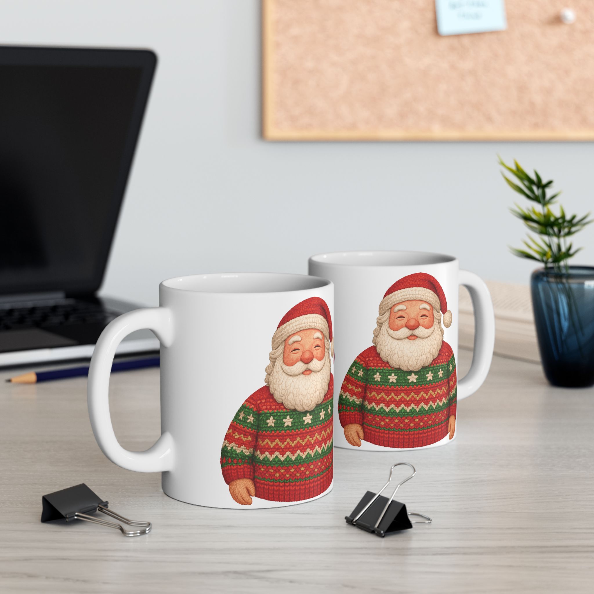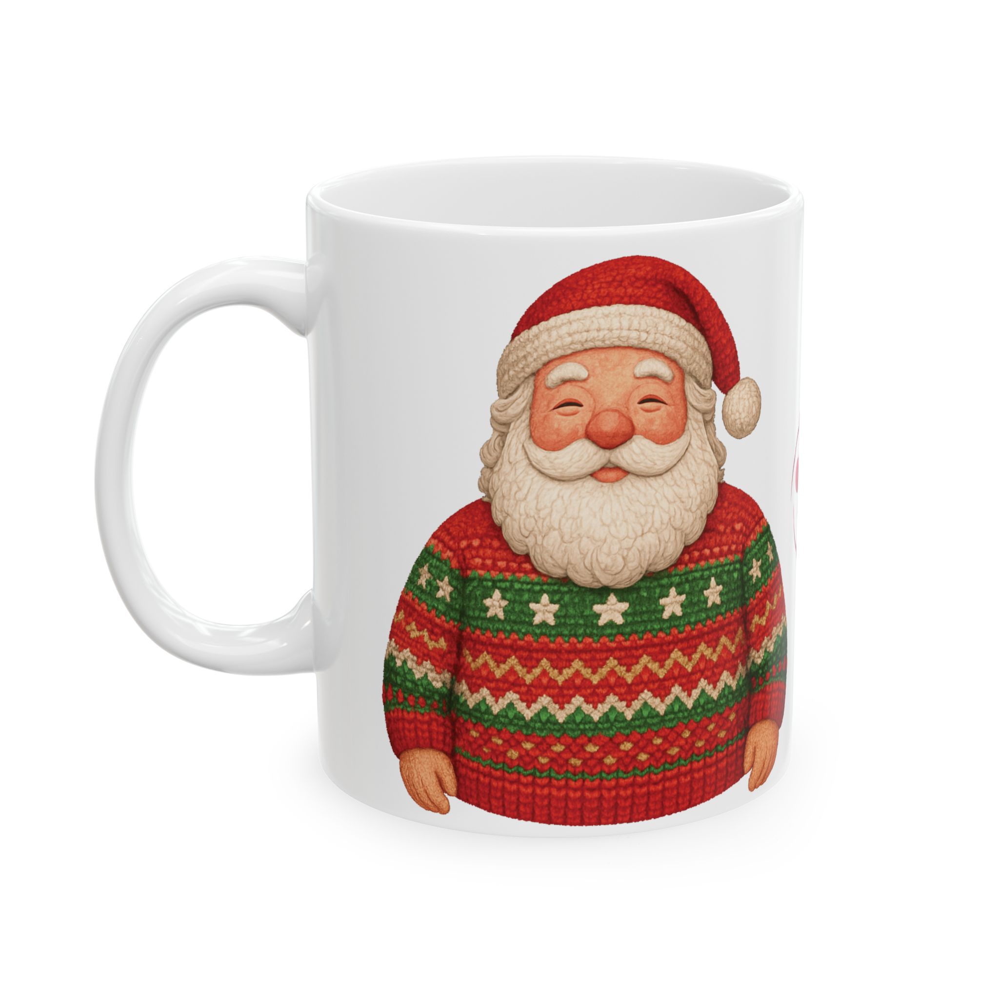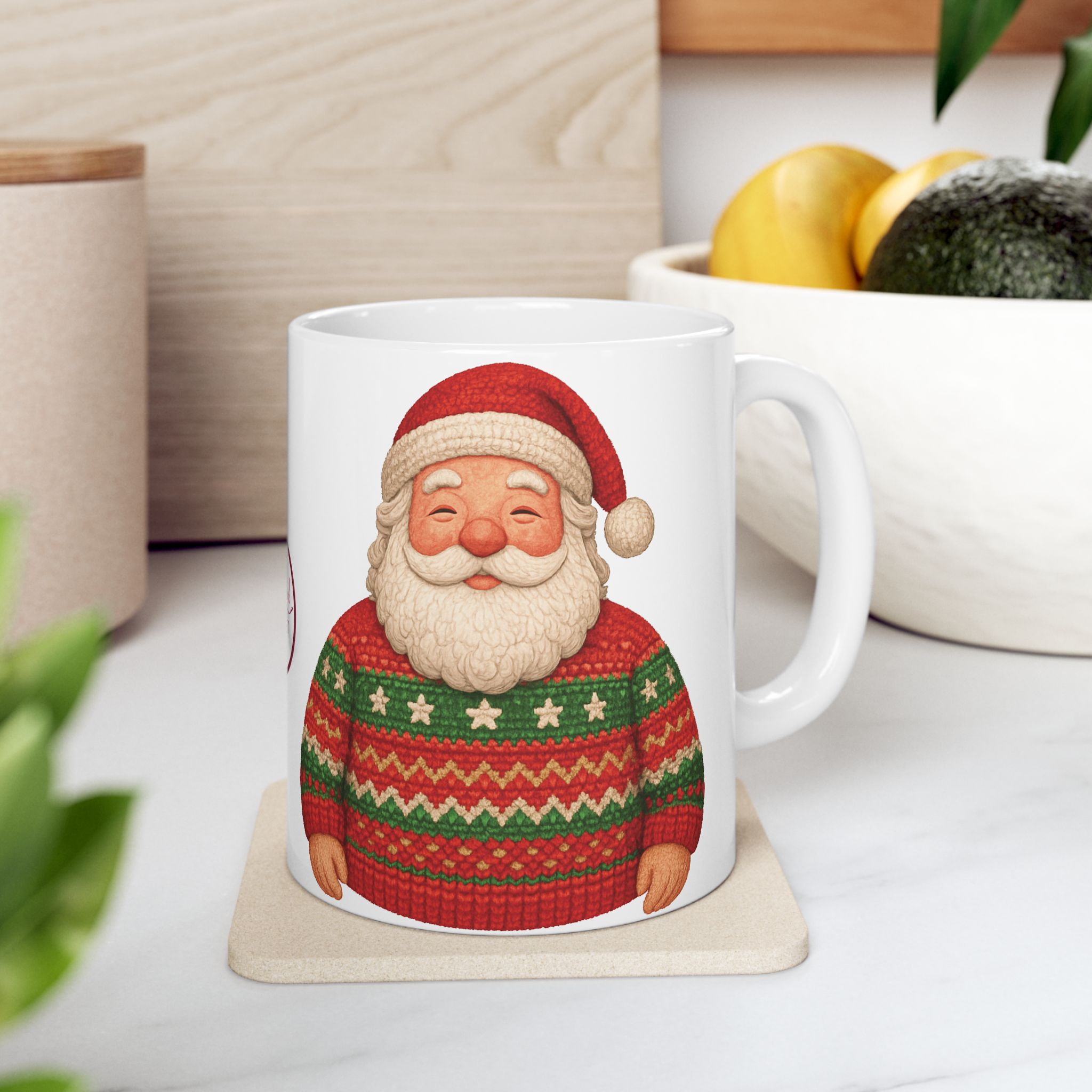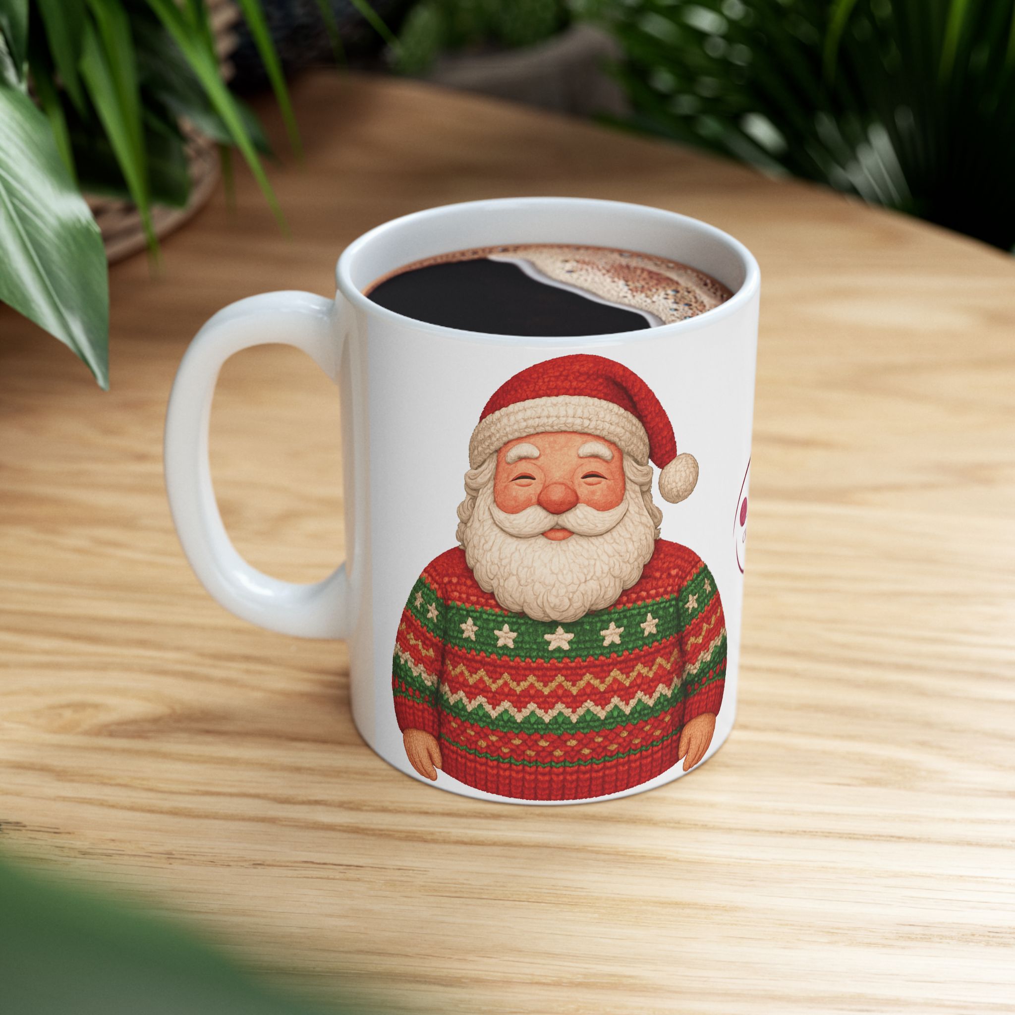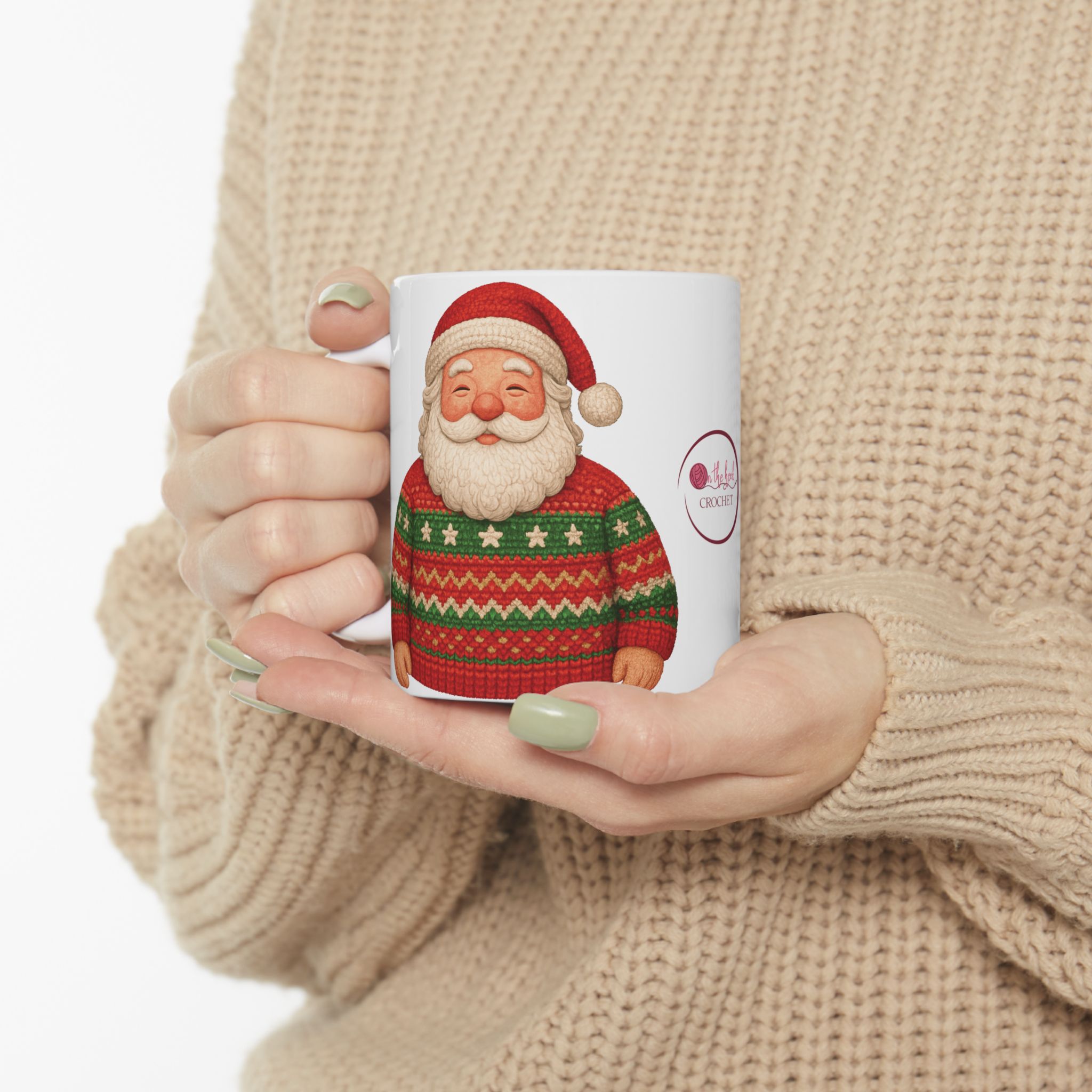 Santa, decked out in his handmade Christmas crochet seater and cap, is all smiles and full of joy this Christmas! This ceramic mug brings that cozy, slightly mischievous scene to your kitchen—bright, cheery colors that pop against glossy white. It’s the kind of mug you reach for on a frosty morning or during a late-night wrapping session, the one that adds a little holiday warmth to everyday routines. Comfortable to hold, easy to care for, and safely built for daily use, it fits naturally into seasonal movie nights, cookie-baking afternoons, or a pause between errands when you want a small, familiar comfort.