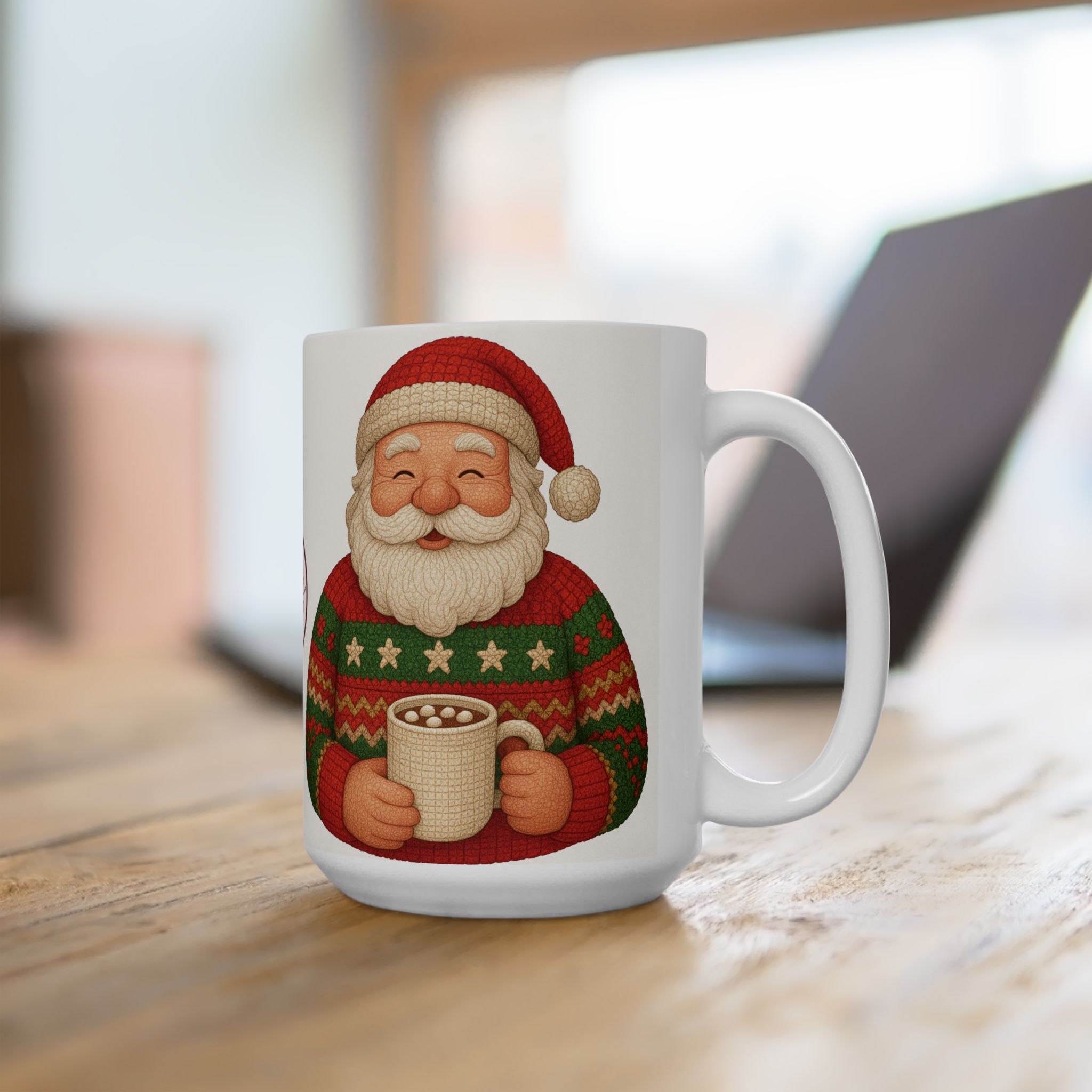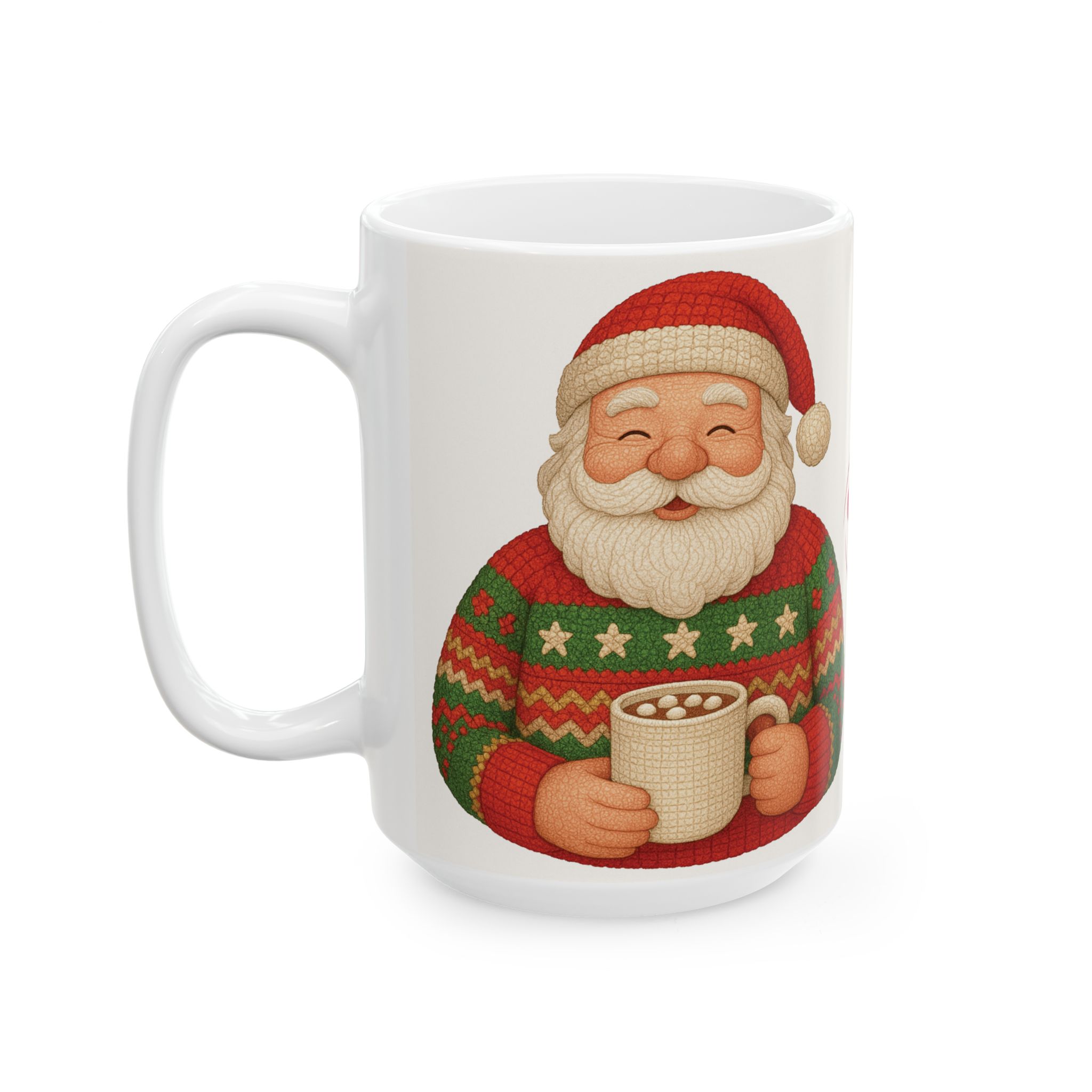 Santa, decked out in his handmade crochet Christmas sweater and cap, savors a sip of hot cocoa. This ceramic mug brings that cozy, slightly mischievous scene to your kitchen—bright, cheery colors that pop against glossy white. It’s the kind of mug you reach for on a frosty morning or during a late-night wrapping session, the one that adds a little holiday warmth to everyday routines. Comfortable to hold, easy to care for, and safely built for daily use, it fits naturally into seasonal movie nights, cookie-baking afternoons, or a pause between errands when you want a small, familiar comfort.