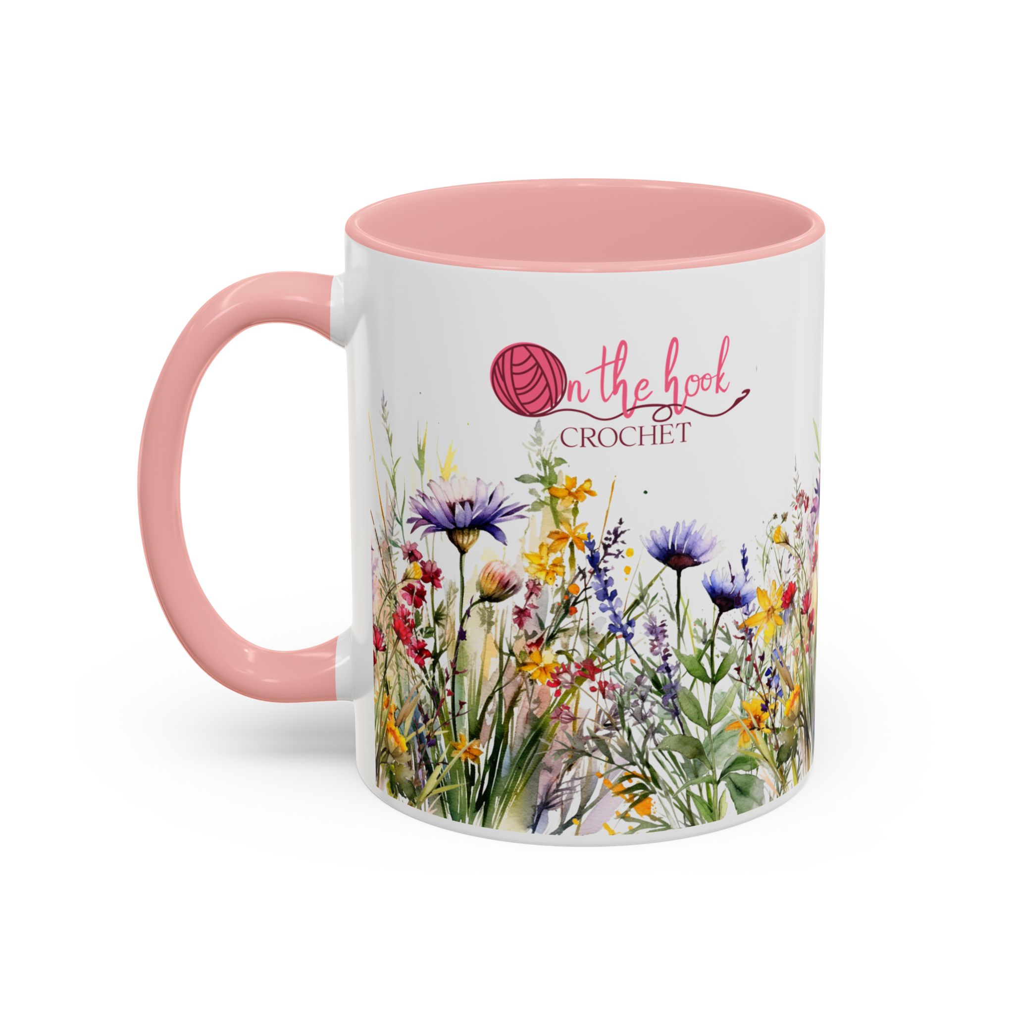 Add some beauty to your crochet time with this pretty wildflower mug by On the Hook Crochet. Designed with original wildflower art combined with a custom version of our logo. Has a pink C-Handle that is comfortable to hold and a matching pink interior.