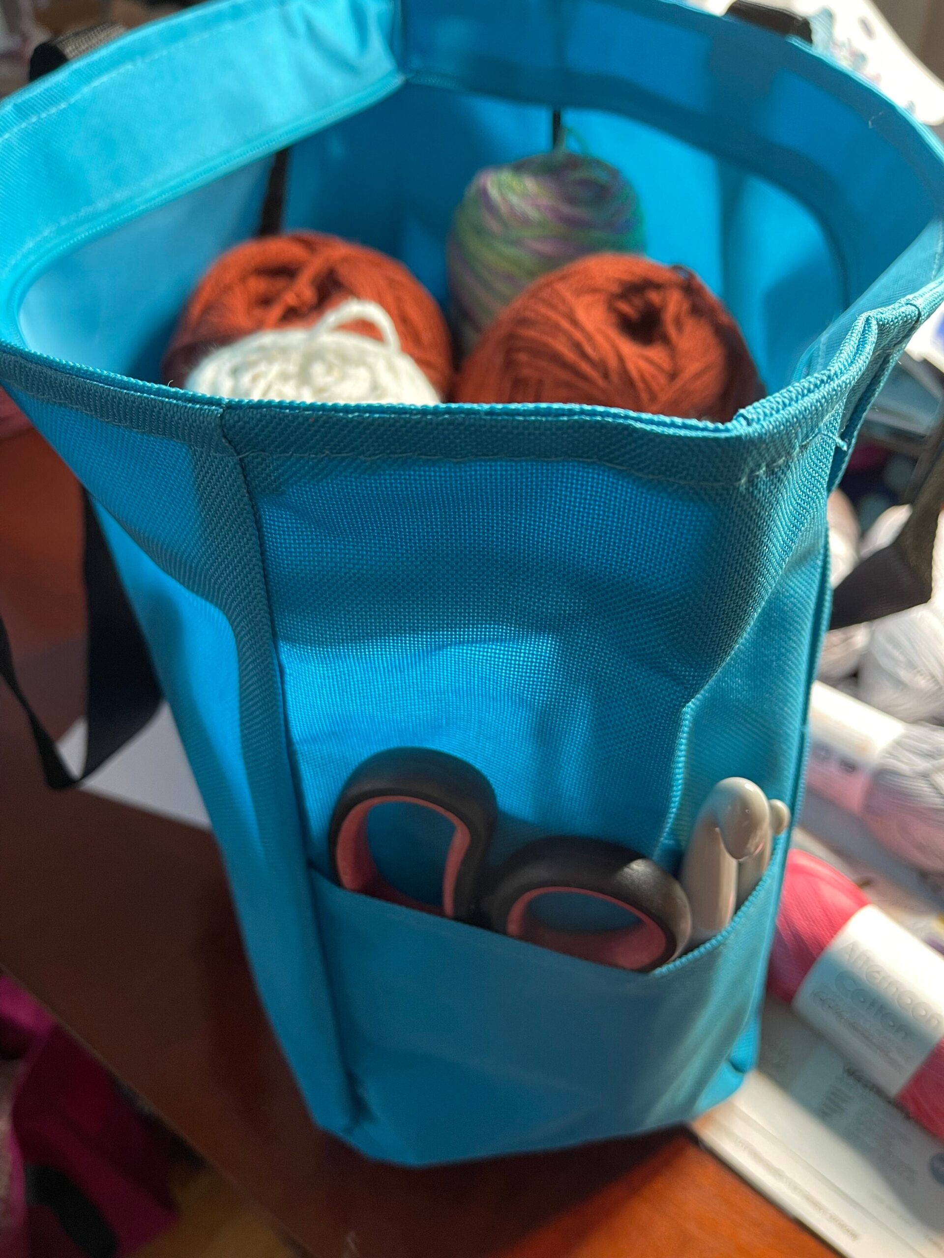 Introducing the Turquoise Blue “On The Hook” Project Bag, custom embroidered with my official On The Hook Crochet logo!